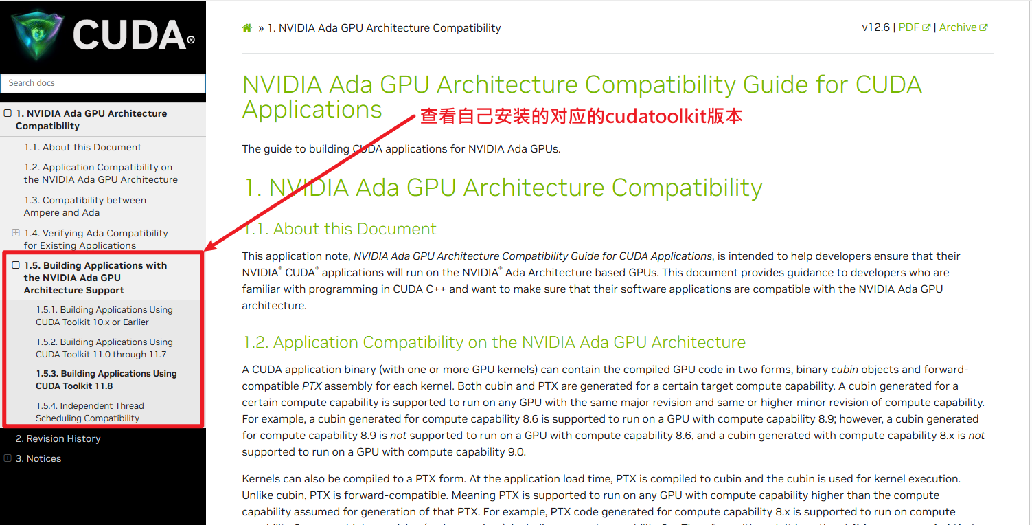 首先要知道自己显卡的架构,然后以 NVIDIA XXX GPU Architecture Compatibility 为关键词查找到类似的官方网页,如 NVIDIA Ada GPU Architecture Compatibility Guide